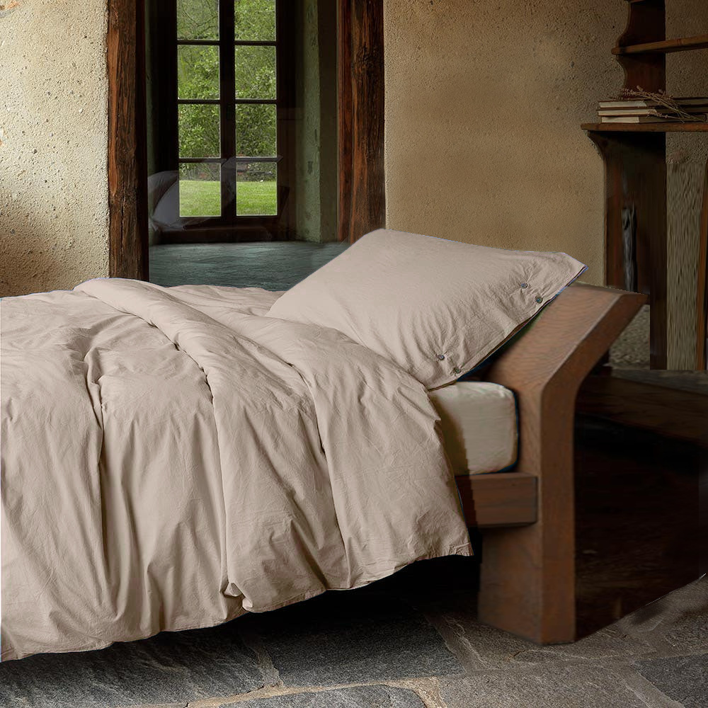 Capo prelavato con effetto NO STIRO. Federe con bottoni realizzati con cotone di recupero. Con pratico Sistema Più Mio, che rende facile l'ancoraggio e l'inserimento del piumino. Disponibile nella dimensione: matrimoniale cm 250x205, sottolenzuolo con angoli cm 175x200. Prodotto con orgoglio in Italia. 25 anni di successi in un percorso che ha portato Naturae di Gabel1957 a vestire le case in Italia e nel Mondo, dalla camera da letto al bagno, dalla tavola al living, sviluppando centinaia di disegni, alcuni dei quali rimasti ancora oggi best sellers. La semplicità e l armonia della Natura unite all eleganza e al fascino della tradizione tessile, identificano i valori e le scelte dell azienda comasca dal punto di vista etico e ambientale.