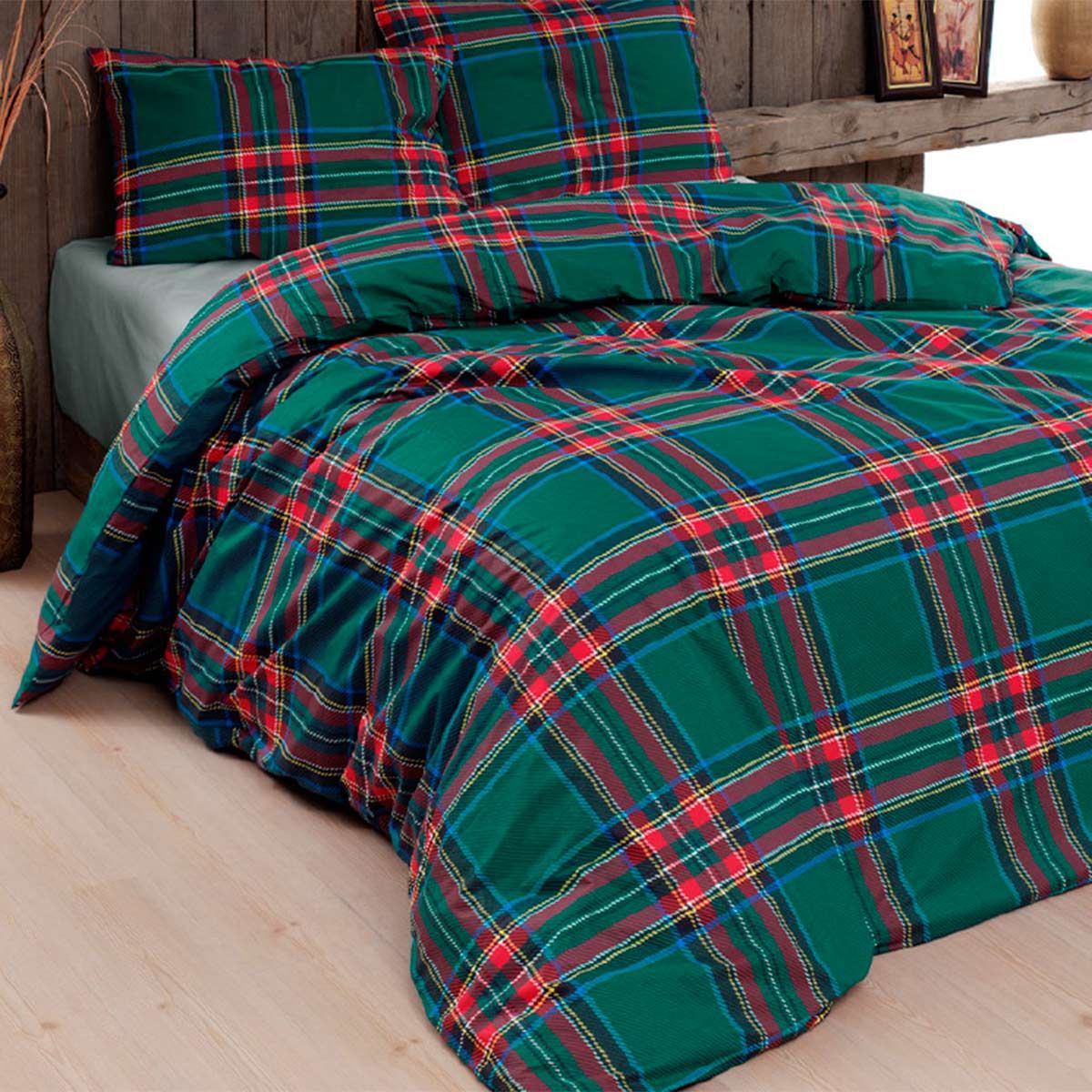 La parure copripiumino Tartan Verde U804 di Daunex porta in camera da letto il fascino intramontabile del motivo scozzese.