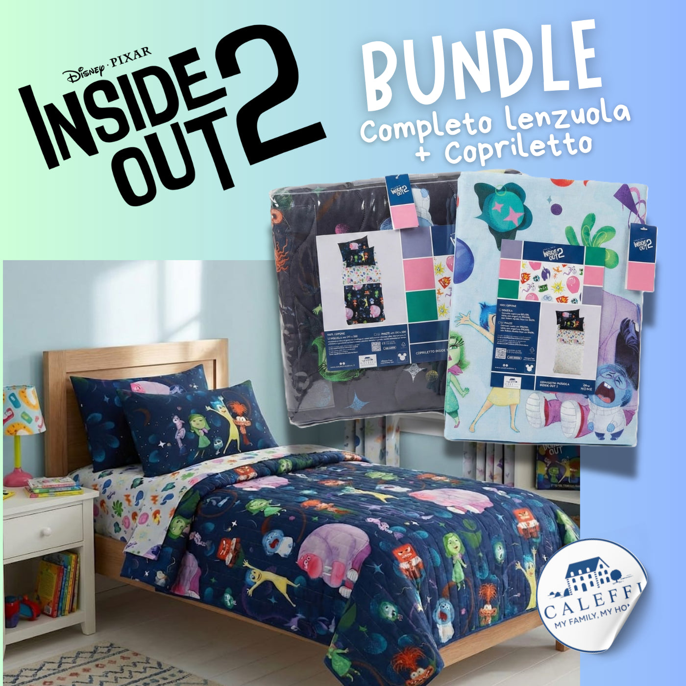 BUNDLE: Set Letto Completo Inside Out 2 Caleffi - Lenzuola + Copriletto Trapuntato